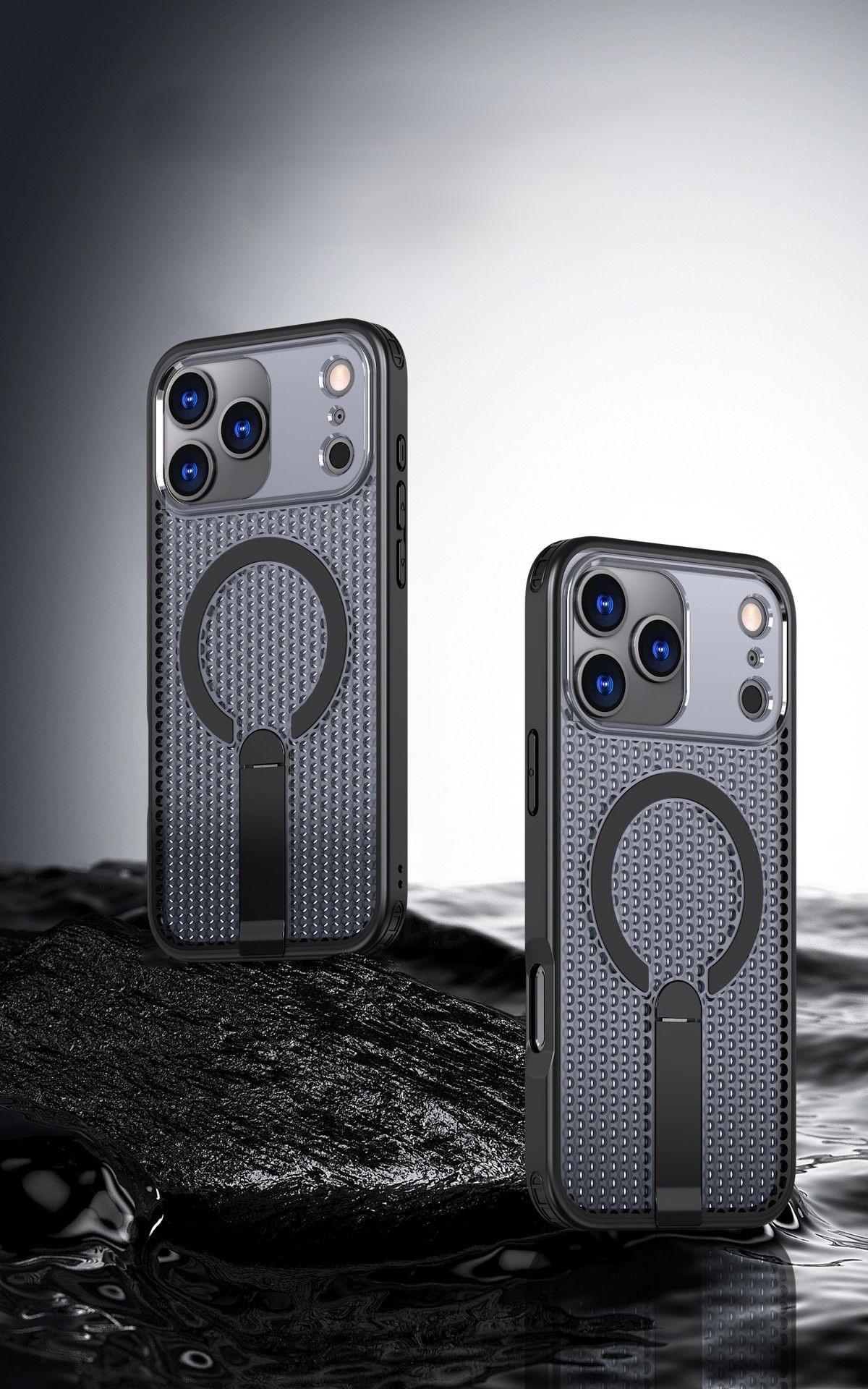 Coque magnétique aérée antidérapante avec support pour iPhone
