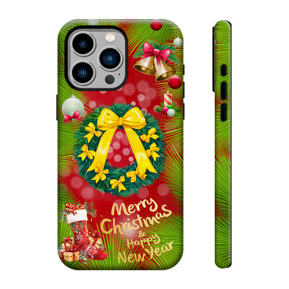 Coque de Téléphone de Fêtes – Couronne de Noël Élégante avec Message Doré
