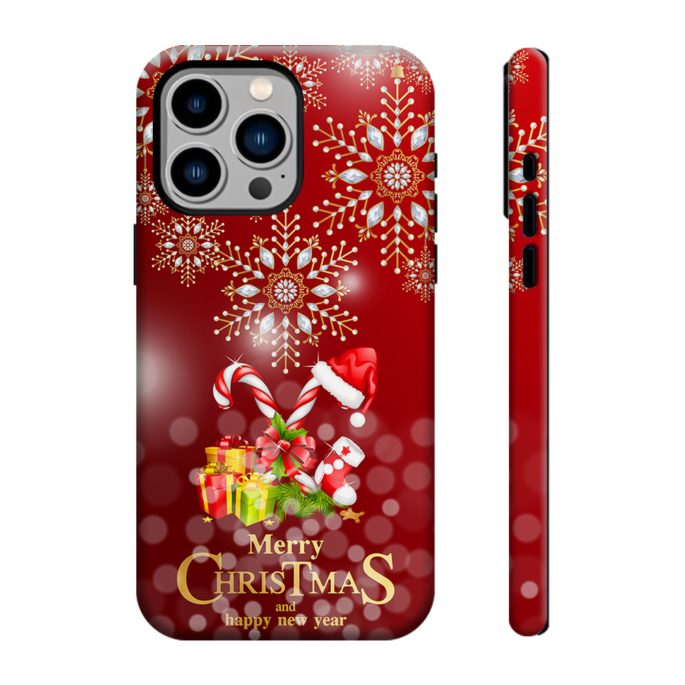 Coque de Téléphone Pailletée « Merry Christmas » – Flocons Étincelants et Cadeaux
