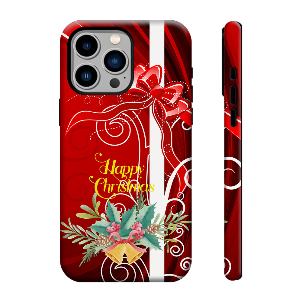Coque de Téléphone Classique « Happy Christmas » – Ruban Rouge et Noeud Papillon
