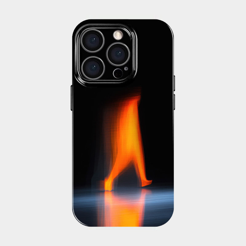 Cette coque iPhone présente une silhouette humaine capturée dans un flou de mouvement artistique. L’orange vif contraste avec le fond noir et les reflets bleutés, créant une impression de vitesse et d’énergie pure. Un design abstrait et résolument moderne.