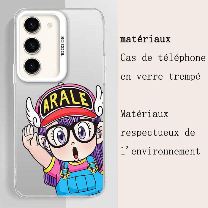 Cette coque Samsung adopte un style comic autour d’Arale (Dr. Slump) ! Réalisée en verre trempé, elle allie esthétique manga et résistance pour protéger votre téléphone.
