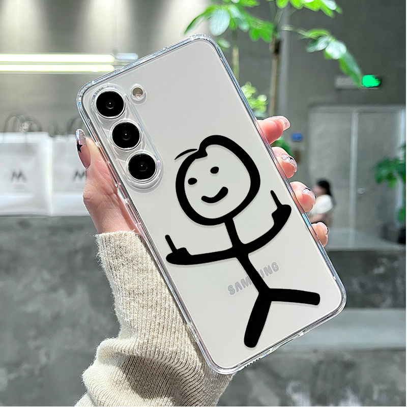 Coque Samsung Minimaliste et Drôle – Personnage Bâton Souriant et Dynamique