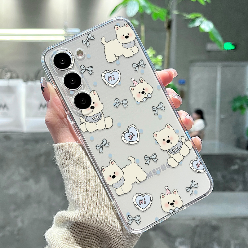 Coque Samsung Transparente Tendresse – Chiots Westie (Terrier Blanc) et Motifs Doux
